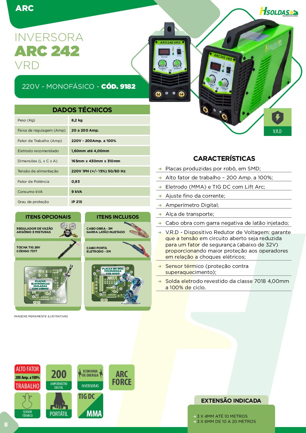 V.R.D – Dispositivo Redutor de Voltagem: garante que a tensão em circuito aberto seja reduzida para um fator de segurança (abaixo de 32V) proporcionando maior proteção aos operadores
