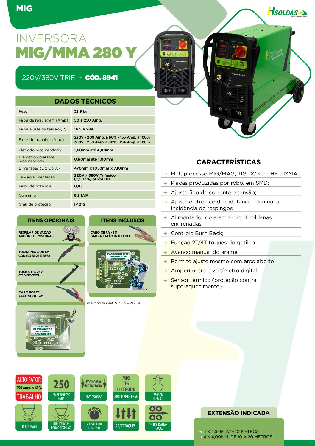 Ajuste eletrônico de indutância: diminui a incidência de respingos;